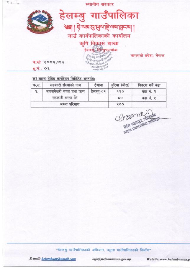 रासायनिक मलको कोटा निर्धारण गरिएको बारे सूचना।