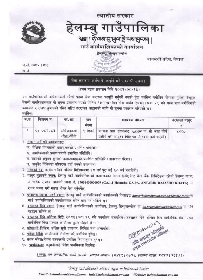 सेवा करारमा कर्मचारी पदपूर्ति गर्ने सम्बन्धी सूचना।