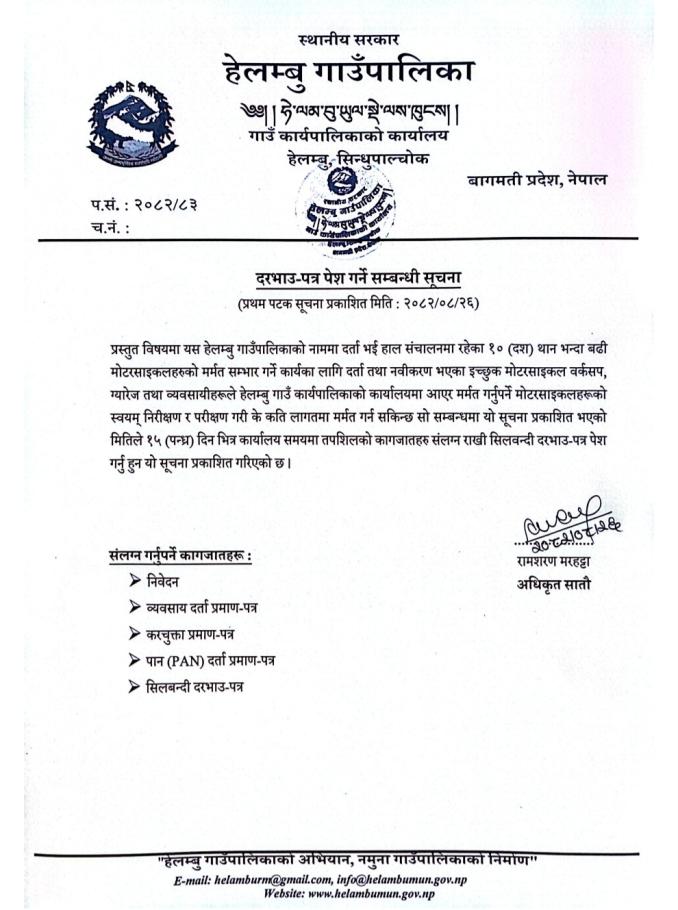 दरभाउ-पत्र पेश गर्ने सम्बन्धी सूचना।