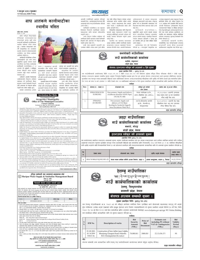 बोलपत्र आह्वान सम्बन्धी सूचना।