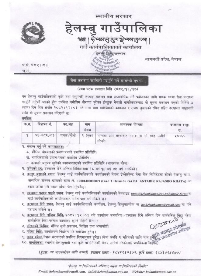 सेवा करारमा कर्मचारी पदपूर्ती गर्ने सम्बन्धी सूचना।